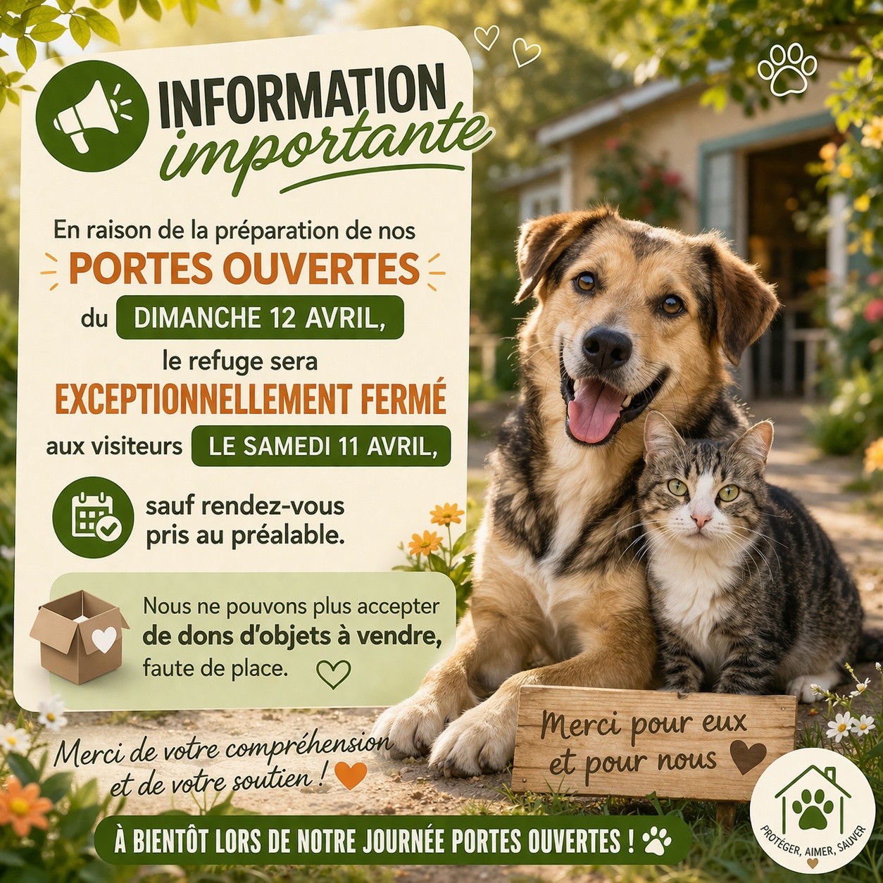 Venir minimum 1h avant la fermeture du refuge pour une éventuelle adoption !!
